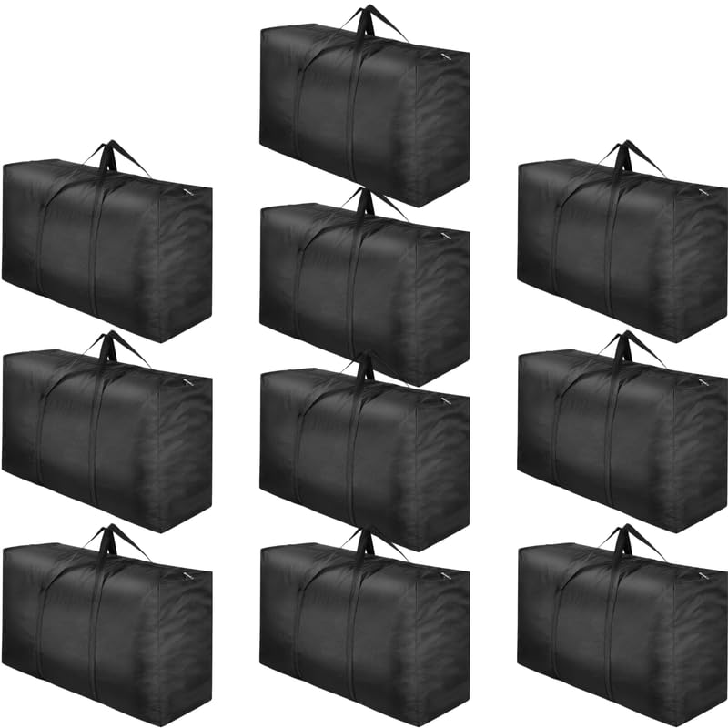Circle M - Circle M 110L Large Clothes Storage Bag Cotton, Sturdy Zipper, Storage Bags for Blankets and Clothes, Under Bed Storage Box - Set of 10 - Black