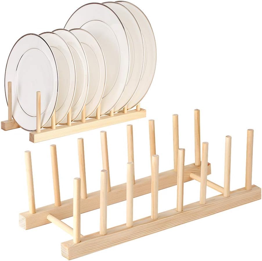 Circle M - Circle M 2-Pack Bamboo Dish Drying Rack: 8-Slot Vertical Drainer for Plates & Bowls Organizer