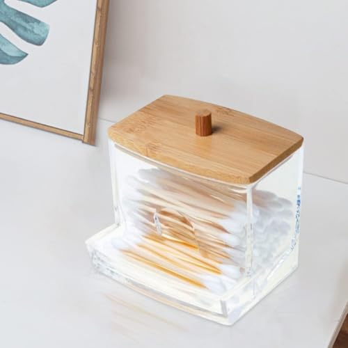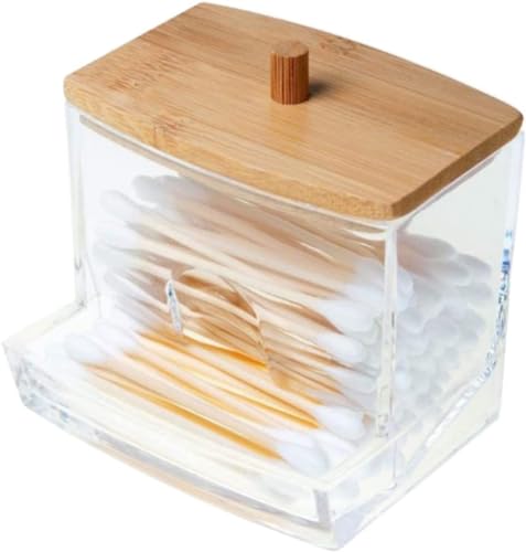 Circle M - Circle M Acrylic Cotton Ball Holder with Bamboo Lid: Vanity Swab Jar Organizer A – Clear
