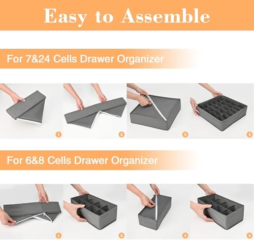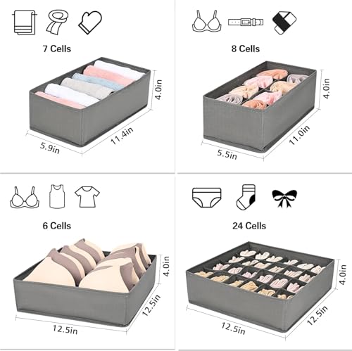 Circle M - منظم أدراج مصنوع من قماش غير محبوك مع مساحات تخزين متعددة للشرابات/الملابس الداخلية من سيركل ام، لون رمادي، 4 قطع