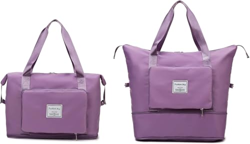 Circle M - Circle M Large Expandable Purple Travel Duffel Bag: Wet Pocket Waterproof Weekend Gym Tote