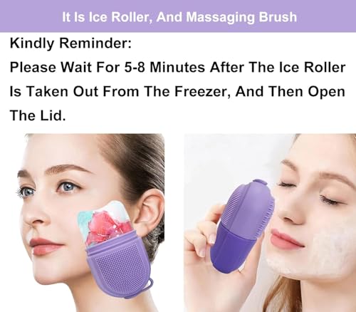 Circle M - Circle M Reusable Silicone Ice Roller for Face: Cold Therapy Massage Tool with Brush for Skin Tightening – Purple