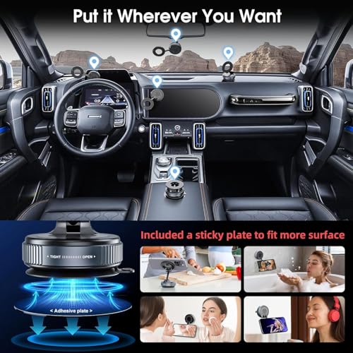 - Vacuum suction for secure mounting.