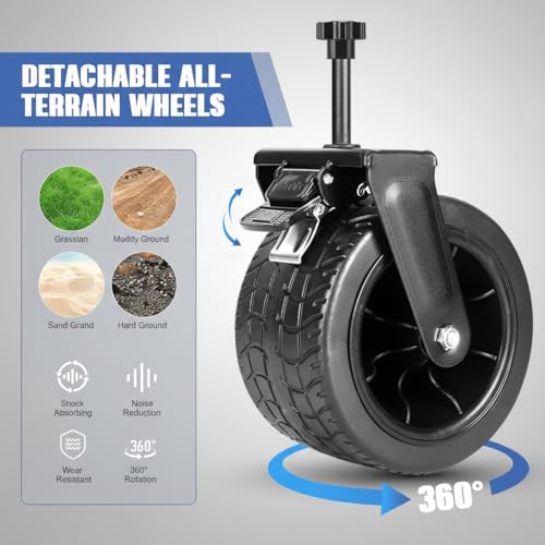 - عربة بعجلات 360 درجة - عجلات بلاستيكية عريضة للغاية مصممة لتحقيق الثبات والدوران السلس عبر الرمال أو العشب أو الأرض غير المستوية، مما يجعل هذه العربة مناسبة للشواطئ أو مواقع التخييم أو استخدام الحديقة.
