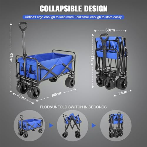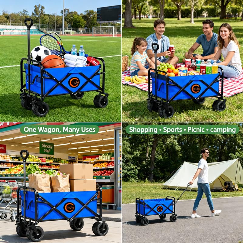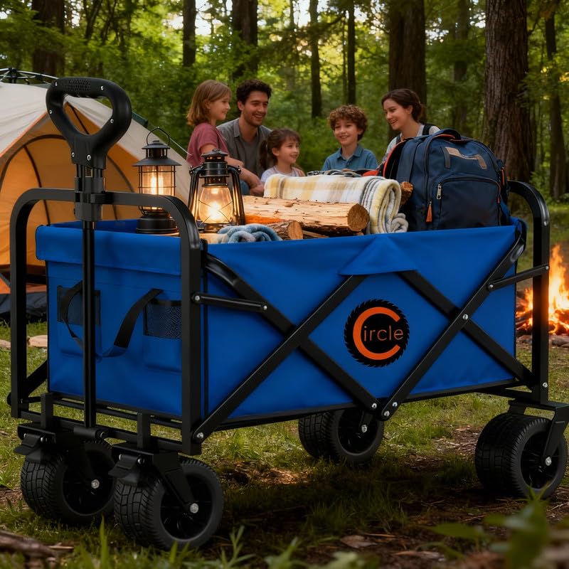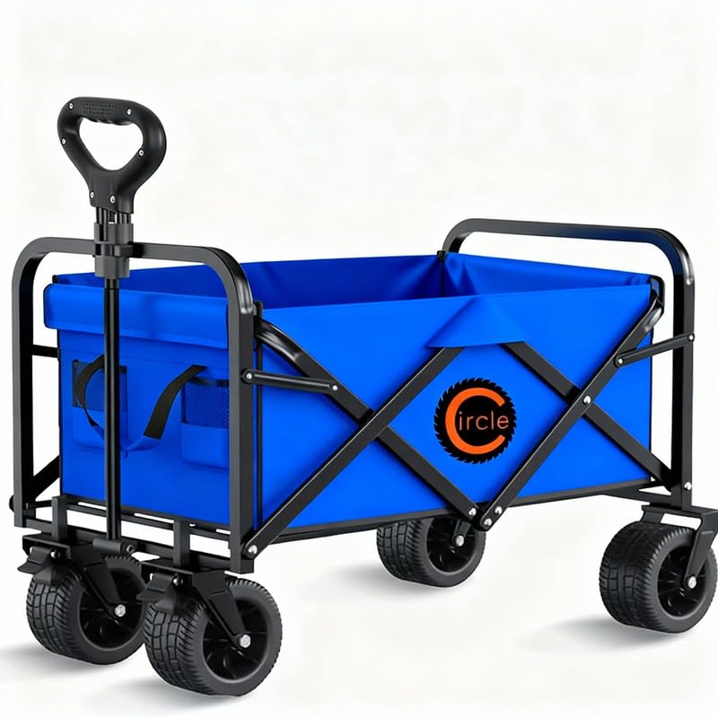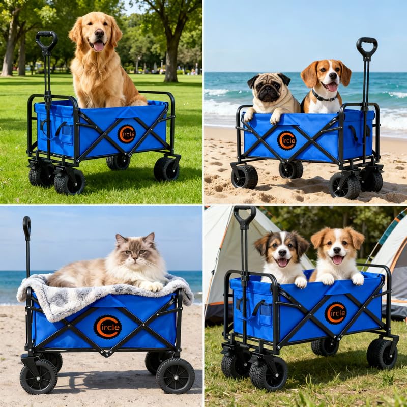 CIRCLE TOOLS - عربة قابلة للطي بعجلات 360 درجة، عربة شديدة التحمل وقابلة للطي، مصنوعة من قماش مقاوم للماء مناسبة للشاطئ والتخييم والتسوق والحيوانات الأليفة، من سيركل تولز - أزرق سعة 150 كجم