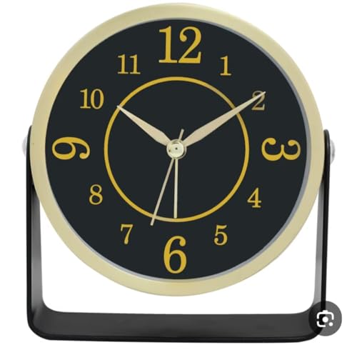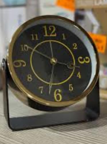 Generic - Circular Pendulum Desk Clock, Gold Numbers on Black Background, Gold Frame, Classic Design