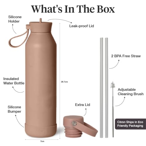 Citron - Citron Water Bottle For Girls 750ml Stainless Steel Water Bottle Vacuum Insulated & Leakproof Kids Bottle (Blush Pink)