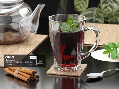 Generic - طقم اكواب شاي أوهايو من سيتي جلاس | مكون من 6 مج شاي بجدارمزخرف حجم 210 مل