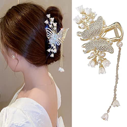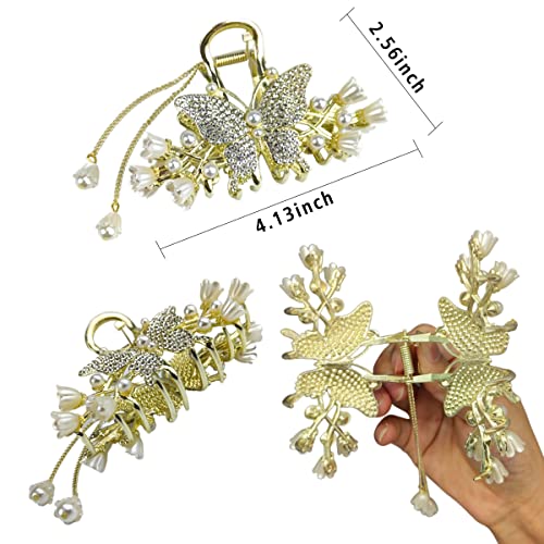 - Elegant Design - Metallic blond hairpin with flower/butterfly/bow/pearl/tassel aesthetic design. popular fit to any hairdos of women.French design handcrafted non-slip strong hair claws for thick hair,but also helping you get an elegant and sweet temperament, making you more charming and elegant.Making you more eye-catching among the crowd.(3 styles for you to choose from: Flower Hair Clips, Bow Hair Clips, Butterfly Hair Clips)