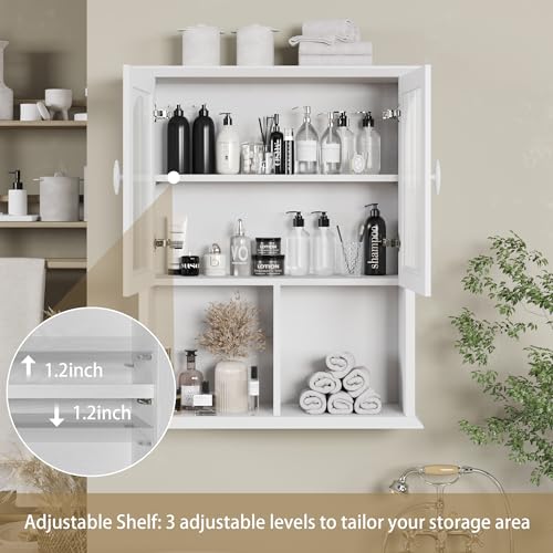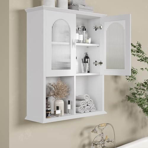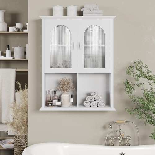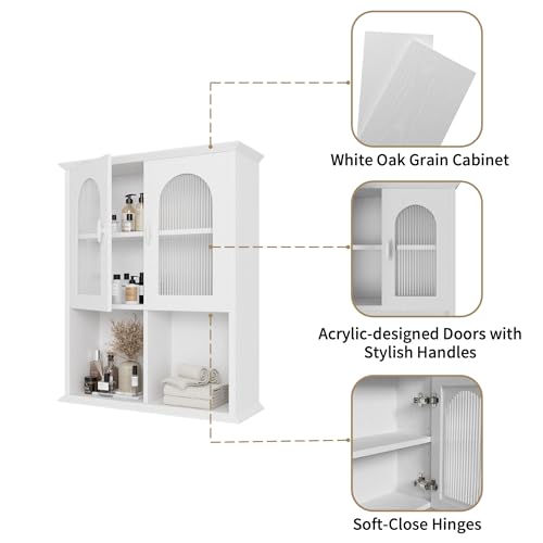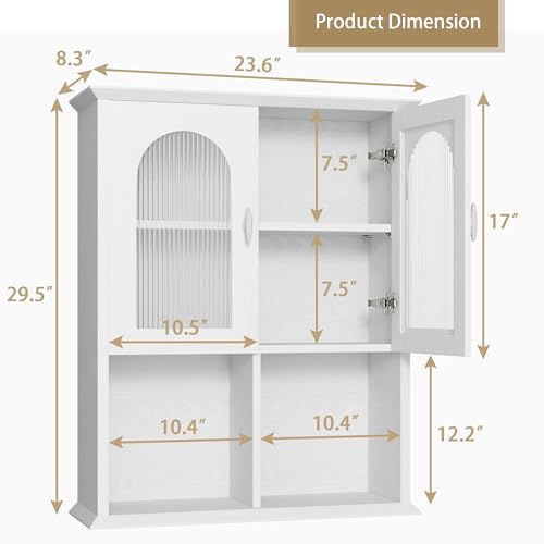 CJL - CJL Bathroom Wall Cabinet with Fluted Door, 23.6'' x 29.5'' Medicine Cabinet, Over The Toilet Storage Cabinet, White