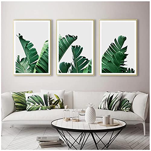 CJYRJCC - تابلوه فني من القماش بتصميم عصري بسيط من سي جيه واي ار جيه سي سي، بتصميم اوراق شجر موز اخضر بنمط نورديك، لغرفة المعيشة وديكور المنزل، مقاس 40×60 سم، 3 قطع بدون برواز