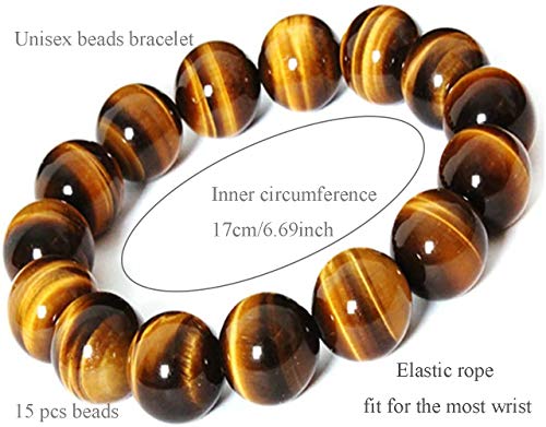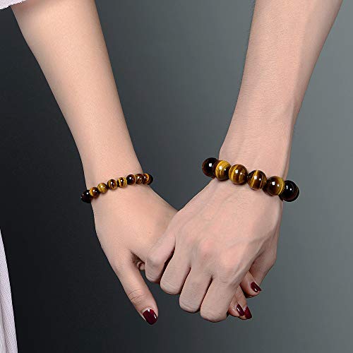 CLaNa - CLaNa A Grade Natural Stone Beads Bracelet Tiger's Eye Bracelets for Men Women Couple Lucky Stretch Yoga Bracelet Bangle Wristband Healing Energy, Stone