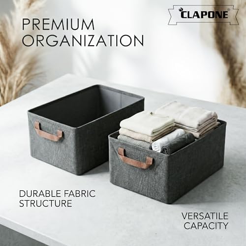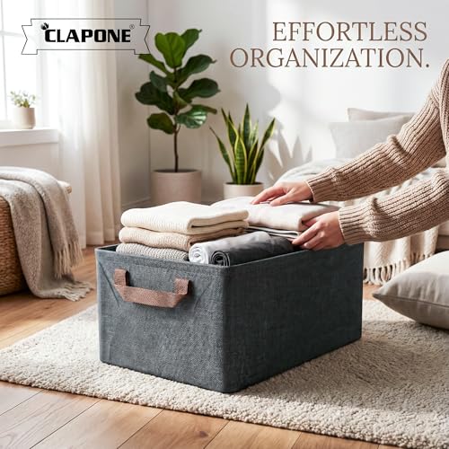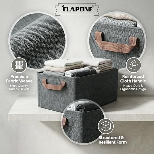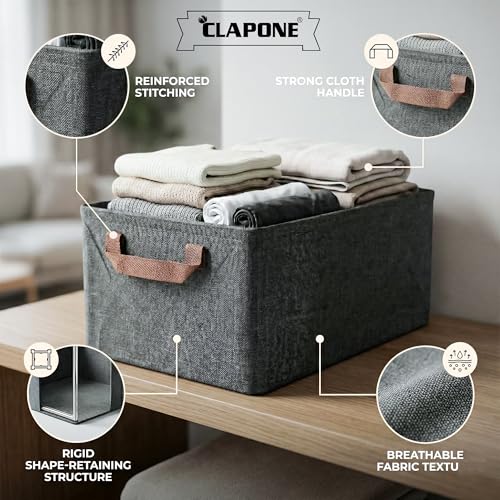 CLAPONE - Foldable Storage Box and Organiser with Metal Frame/Woven Fabric Clothes Organiser with Handle/Wardrobe Organizer for Storage/Almirah Organizer for Shirts/Sweater/Jeans (grey, 10 pcs)