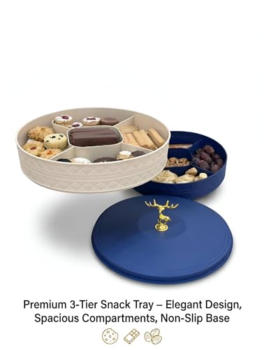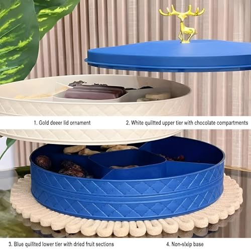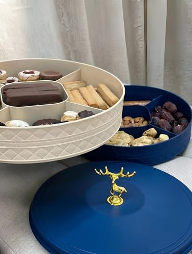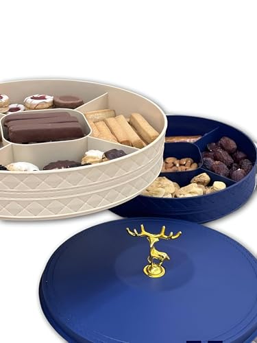 - The divided interior with a rotating lid allows seamless organization of multiple snack types—such as nuts, candies, biscuits, and kahk—keeping them neatly separated for easy access during gatherings or daily use.