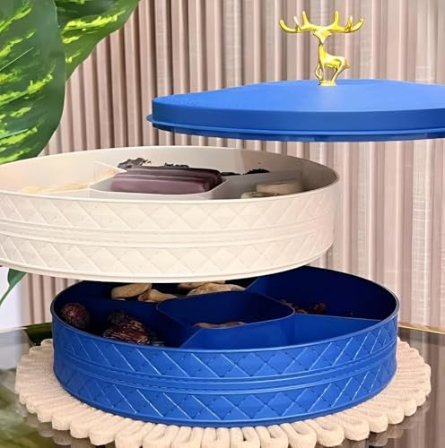 Generic - Classic Candy Tray - Round Plastic Serving Dish with Secure Lid, Perfect for Nuts, Sweets, and Baked Delights, Made from Pure, Non-Toxic Plastic (Model 2 blue)