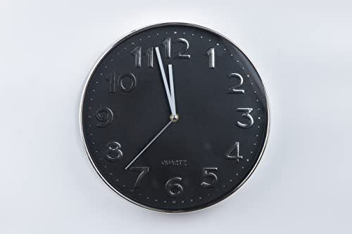 Generic - ساعة حائط دائرية كلاسيكية تعمل بالبطارية بحركة عقارب صامتة دون تكتكة - اسود (موديل:SWI538)، بلاستيك معدن الومنيوم، تناظري
