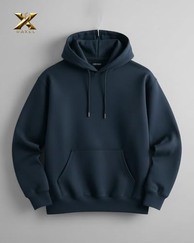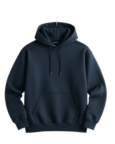 Generic - هودي قطني رياضي كلاسيكي، كحلي، بغطاء رأس وجيب أمامي (M)