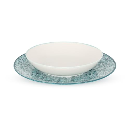 - COORDINATED STYLE: Harmonious combination of classic white and contemporary turquoise pattern creates a cohesive table setting