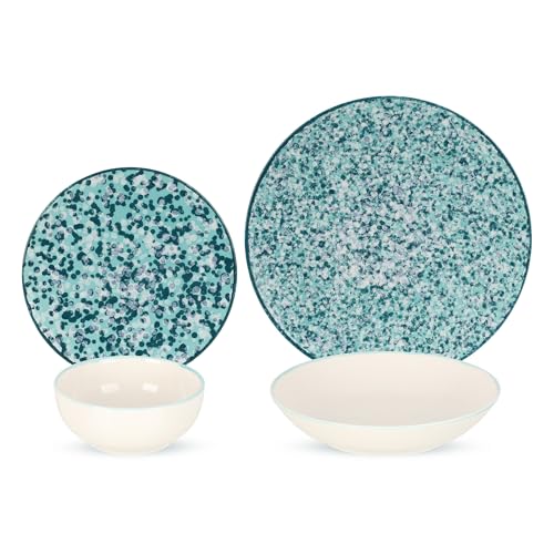 - COMPLETE SET: 24-piece dinner set includes 6 place settings with dinner plates, side plates, and bowls in elegant turquoise and white porcelain