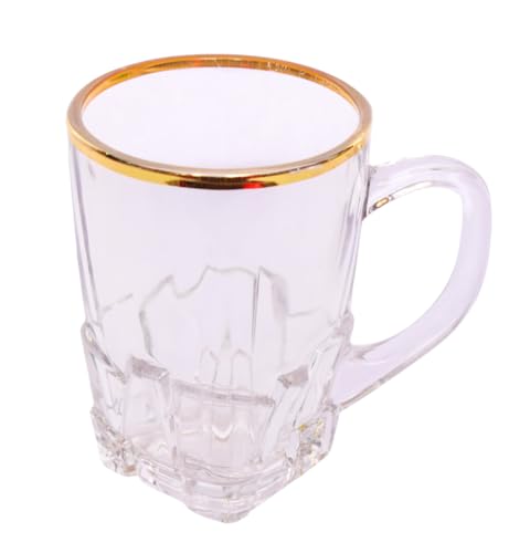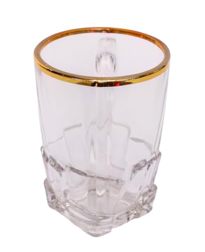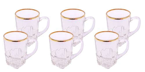 Classic Gold Rim Glass with Handle Tea Cup Set of 6 Pieces - Transparent and Gold