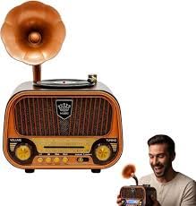 - Classic vintage design: unique Gramafon design radio with gold horn and elegant vintage shape, adds a great accent to any room with a 8.5x5.5x4.5-inch
