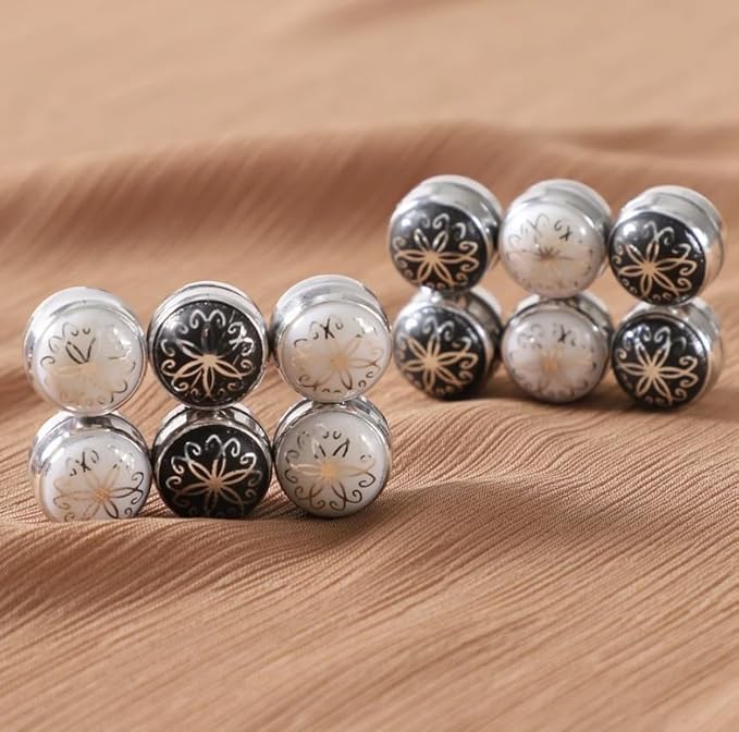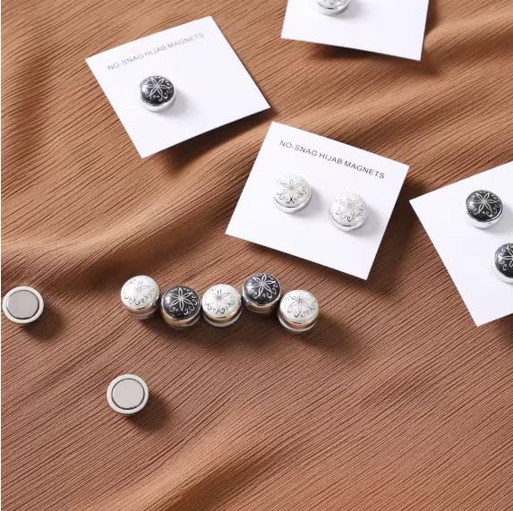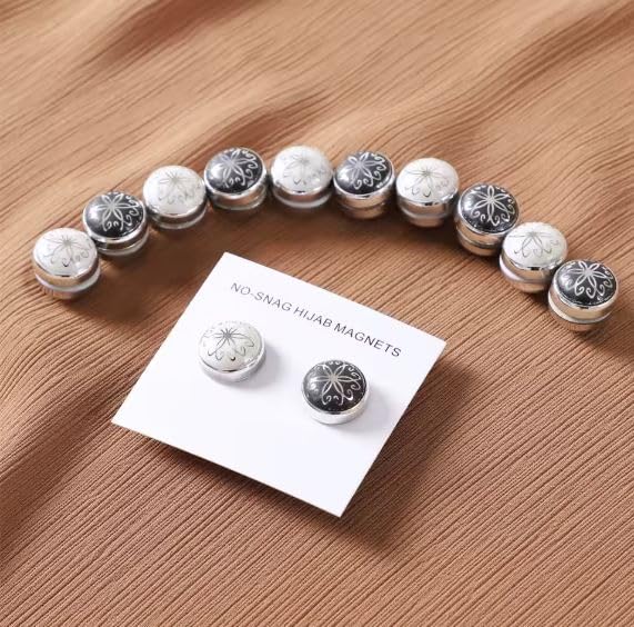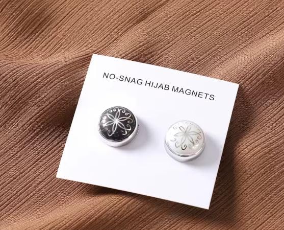 Generic - مغناطيس حجاب كلاسيكي، تصميم نمط زخرفي، مجموعة من قطعتين باللونين الاسود والابيض، مجموعة تركية عالية الجودة