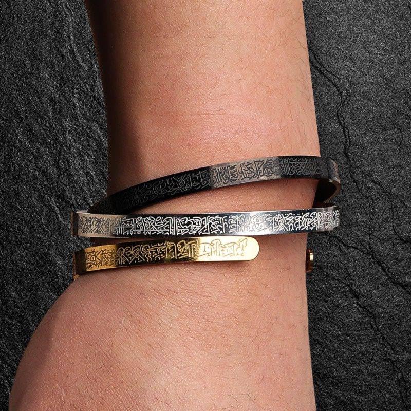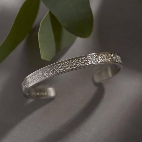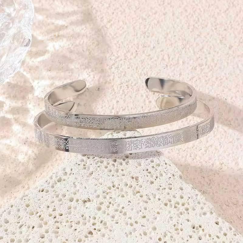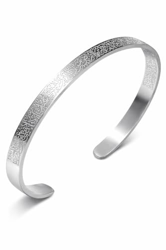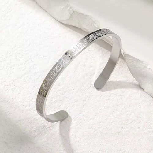 Generic - Classic Islamic Muslim Ayatul Kursi Scripture Cuff Bracelet Bangles for Men silver Plated Stainless Steel Religious Amulet Jewelry