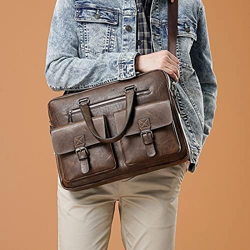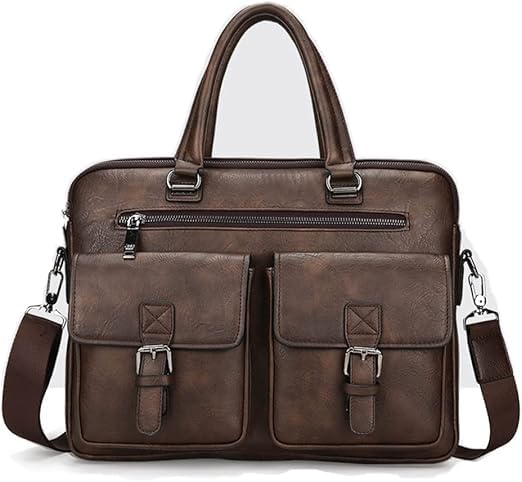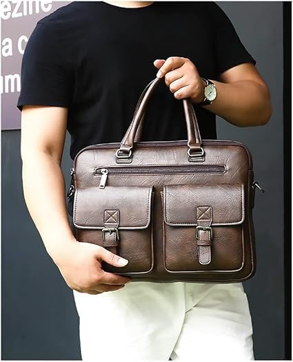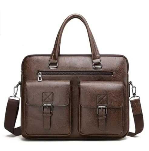 Generic - Classic Laptop Bag for Men Leather Large Fashion Design Business Office Laptop Bag Adjustable and Controlled Leather Shoulder Bag Dark Brown