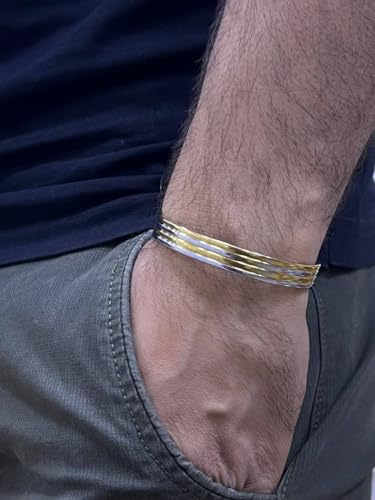 Generic - سوار كلاسيكي فاخر مزدوج الطبقات، مطلي بالذهب والفضة، مجوهرات رجالية عصرية