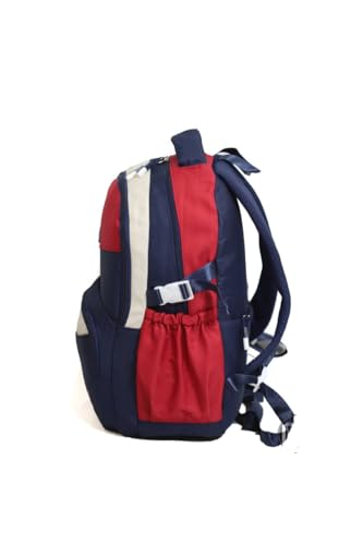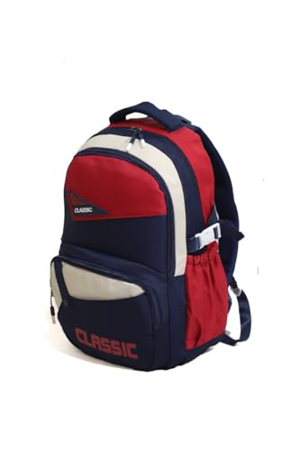 Generic - حقيبة ظهر كلاسيك، متعددة الجيوب، أزرق/أحمر/بيج، مقاس ١٨، قماش متين