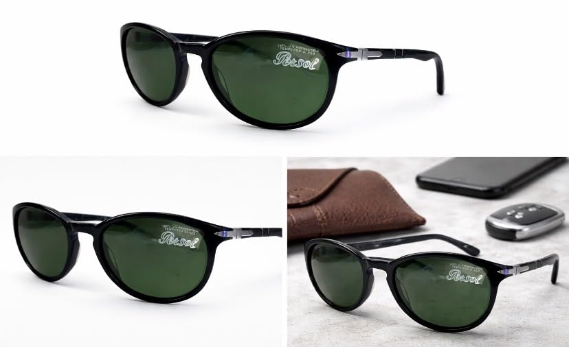 Generic - Classic Round Sunglasses for Men & Women – Green UV400 Lenses, Black Frame, Lightweight Retro Eyewear