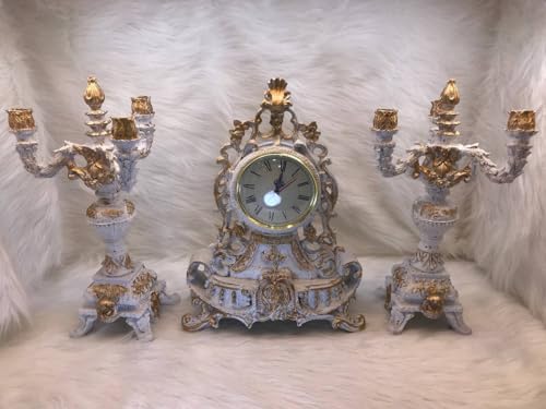 Generic - تحفة ملكية كلاسيكية – ساعة طاولة وشمعدانين بتصميم فاخر