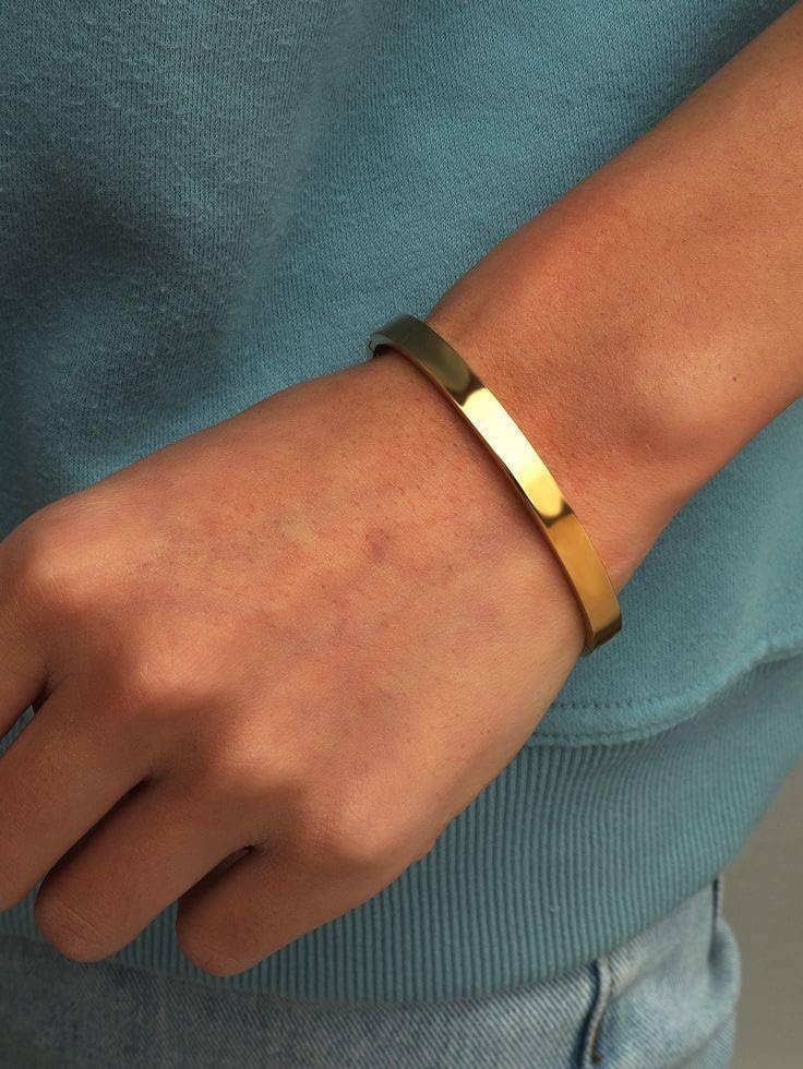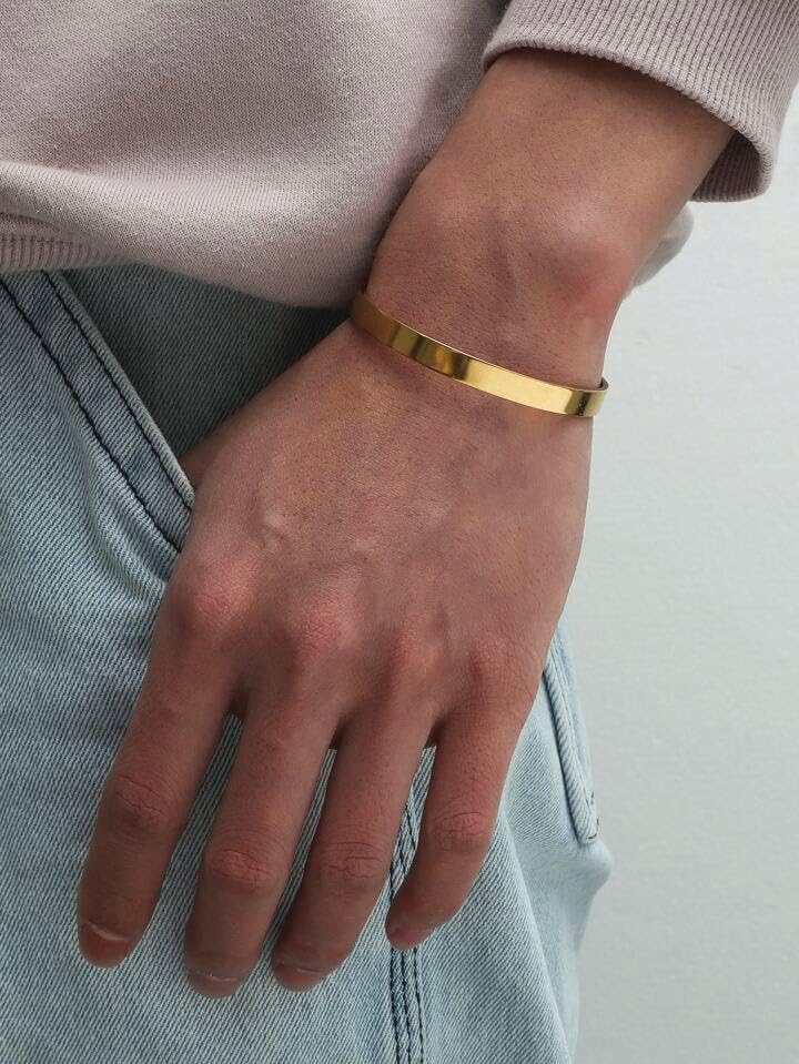 Generic - Classic Simple Smooth Men Woman Bracelet New Round Bangles Flat Cuff Open Gold Color For men Bangle Jewelry Gift