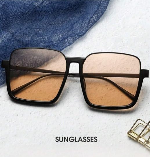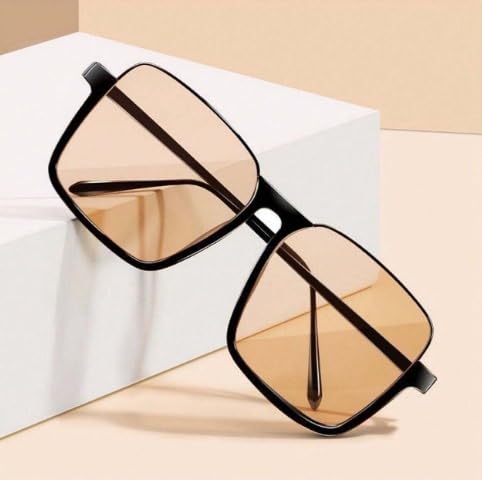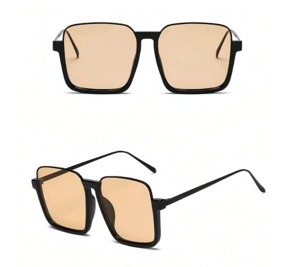 Generic - Classic Square Sunglasses for Women Vintage Sunglasses UV400 Protection (Black with Honey Lens)