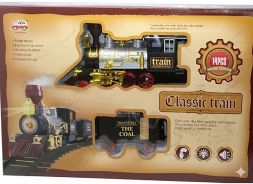 - Package Contents: Classic 14 piece train includes steam locomotive and charcoal buggy for a realistic and fun play experience