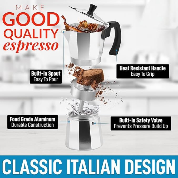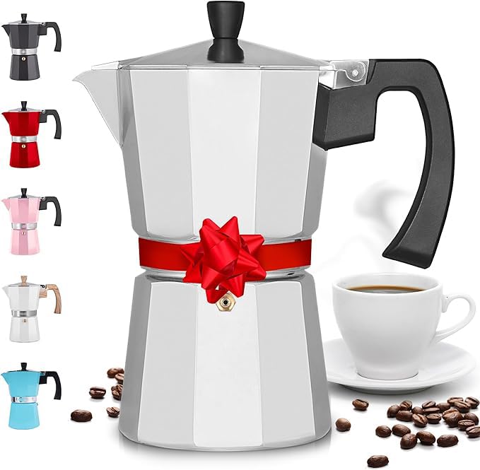 Generic - Classic Stovetop Espresso Maker for Powerful Espresso with Great Flavor, Classic Italian European Style Moka Pot, Delicious Coffee, Easy to Operate and Quick Clean (Silver) (6 Cups)