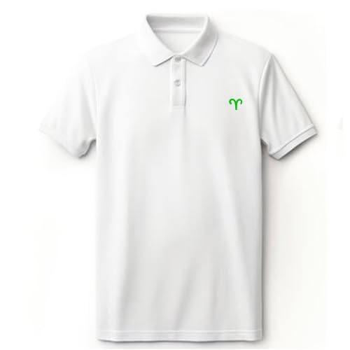 Generic - Classic White Polo Shirt, Short Sleeves, Aries Zodiac with Green Logo, Cotton, Size (XL)