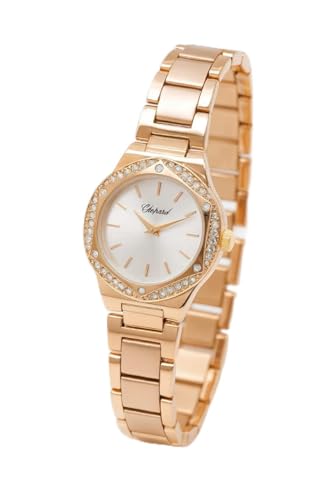 Generic - ساعة يد نسائية كلاسيكية، إطار ذهبي مرصع بالكريستال، مينا فضي، سوار معدني ذهبي، ٣.٥ سم