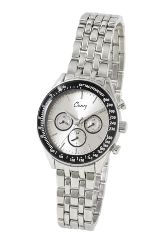 Generic - Classic Women's Wrist Watch, Silver Bezel with Tachymeter, Silver Dial, Interlocking Metal Bracelet, Triple Subdials, Diameter 3.5 cm