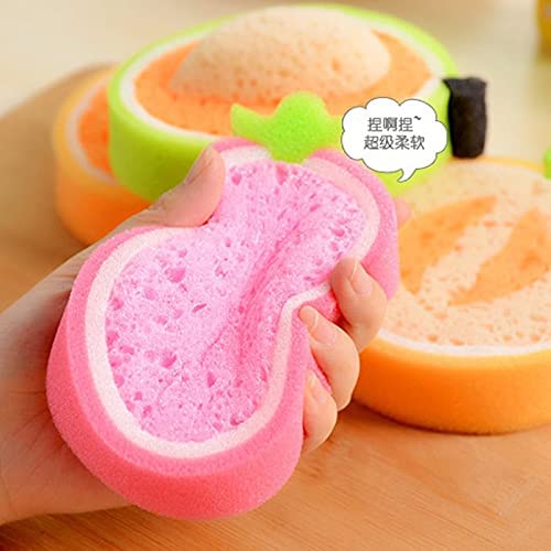 Outfit Factory - فراشي تنظيف - قطعة واحدة من فرشاة إسفنجية للمطبخ على شكل فاكهة متعددة الجنسيات ، فرشاة حمام ناعمة ، وعاء الأطباق ، أدوات الغسيل ، إسفنجة فرك 4 أنماط (فراولة)