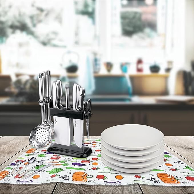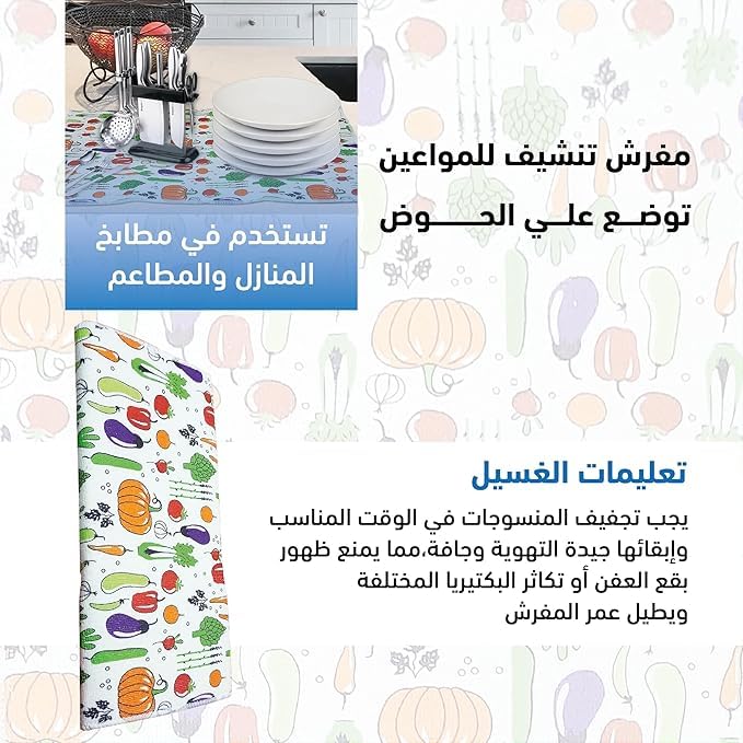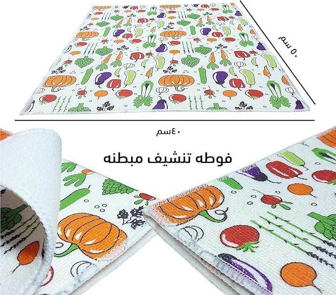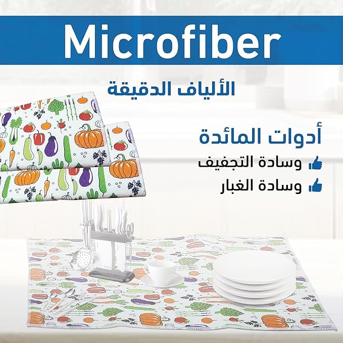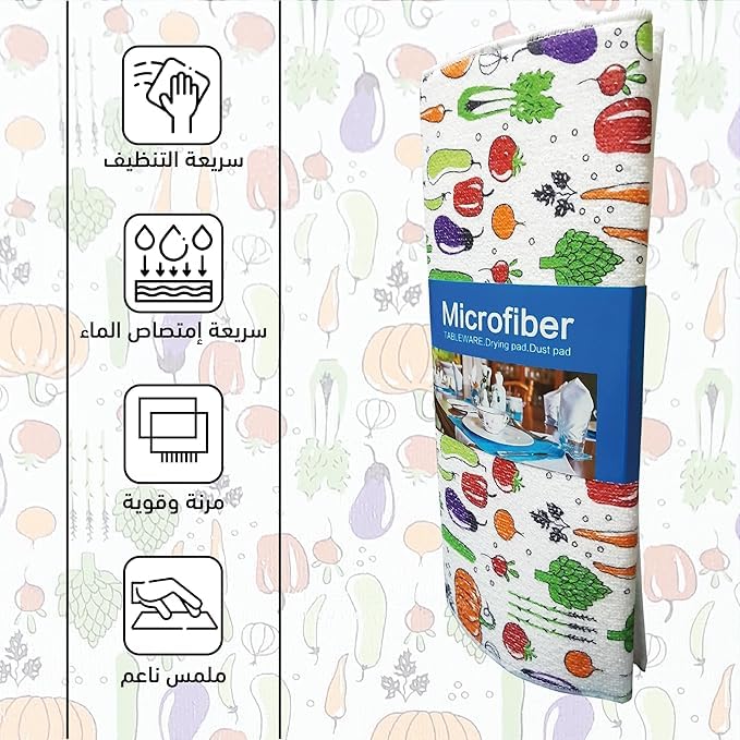 - سهلة التنظيف والعناية: استمتعي بتنظيف خالٍ من المتاعب مع فوط التنشيف المبطنة من المايكروفايبر. بفضل طبيعتها سهلة التنظيف ستسمح لك بالحفاظ على النظافة المثالية دون عناء، وتضمن سطحًا نظيفًا وصحيًا لأواني مائدتك.