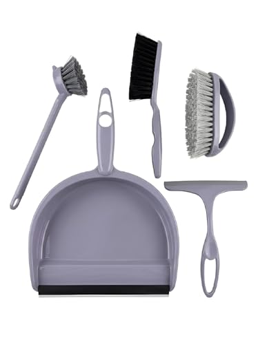 - This comprehensive five-piece cleaning collection includes a dustpan, window squeegee, dish brush, soft brush, and hard brush, designed to handle diverse household cleaning tasks efficiently. The set features a practical dustpan with a carefully engineered rubber edge that effectively collects dust and debris from various floor types without scattering. Each tool is crafted from durable materials to withstand regular daily use, ensuring long-lasting performance in any home environment. The coord