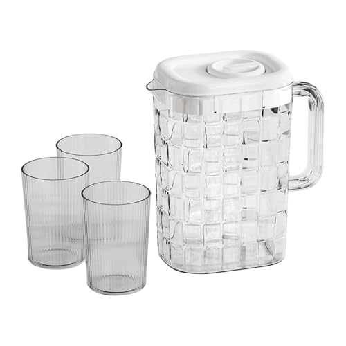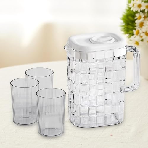Generic - Clear Acrylic Beverage Pitcher Set, Water & Juice Serving Jug with 3 Cups, Lightweight Durable Drinkware for Kitchen, Table, Ramadan & Entertaining (Transparent 1 jug, 3 cups)