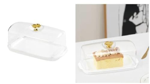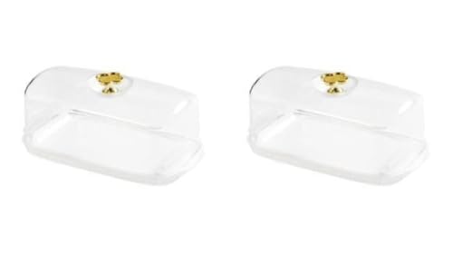 Generic - طبق زبدة اكريليك شفاف، حافظة زبدة متينة بمقبض ذهبي، مثالية للاستخدام في المطبخ وتناول الطعام (شفاف، عبوتان)
