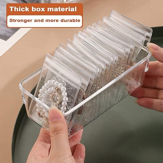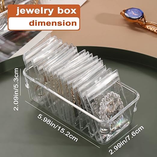 Generic - Clear Acrylic Jewellery Organiser Box, 15.2 x 7.6 x 5.3 cm, 8 Pouches for Necklaces and Rings