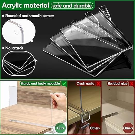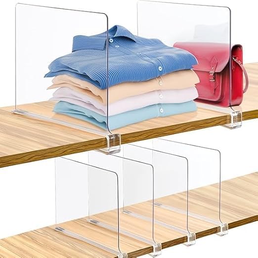 Generic - Clear Acrylic Shelf Dividers, 6 Pack Closet Organizer for T Shirts, Jackets, Books, Handbags, Purse Storage