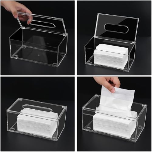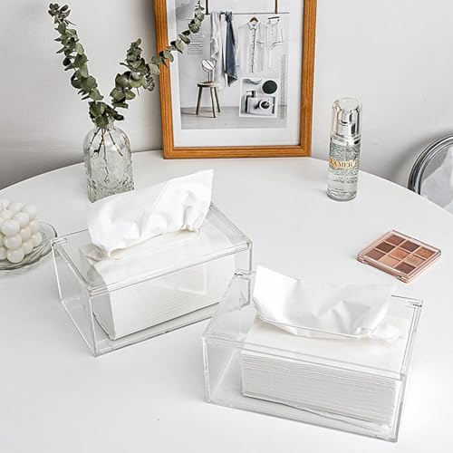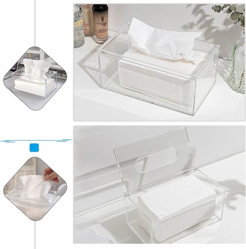 Clear Acrylic Tissue Box with Flip Lid, Plastic Tissue Organizer for Bathroom Kitchen Home Rectangle, 1 Piece, 19.5x11.5x9cm