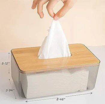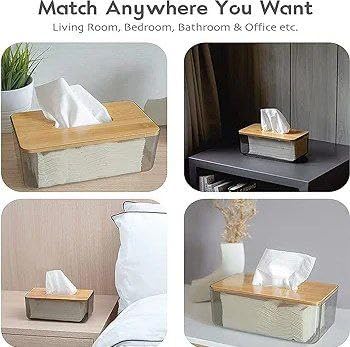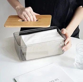 Generic - علبة مناديل أكريليك شفافة بغطاء خشبي – تصميم أنيق وعصري لتنظيم المناديل وحماية محتوياتها للاستخدام في المنزل والمكتب