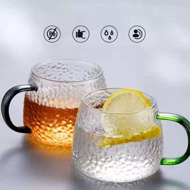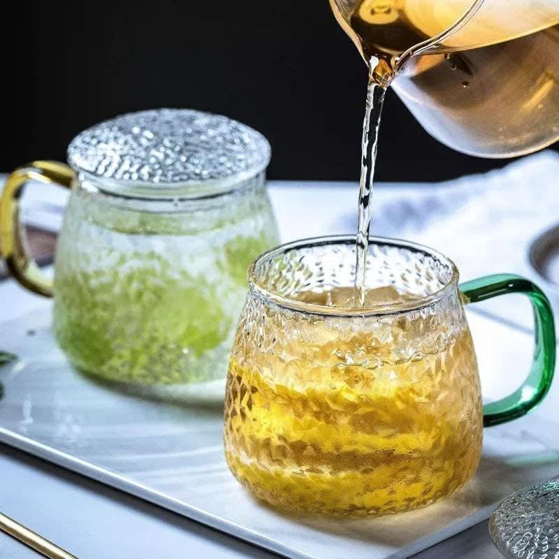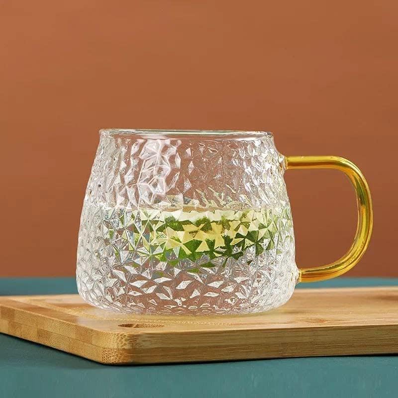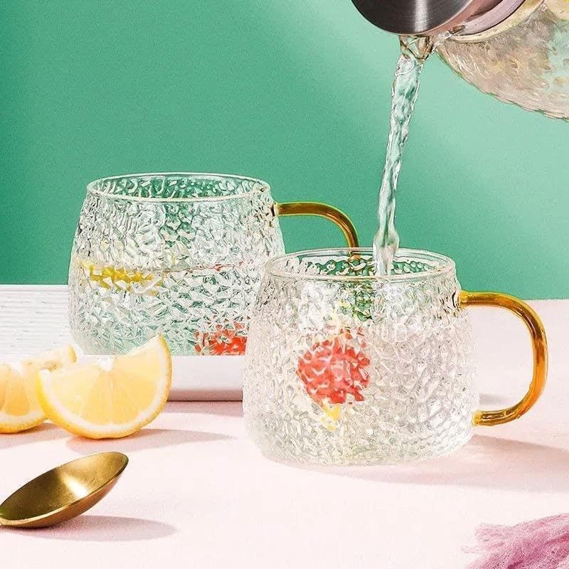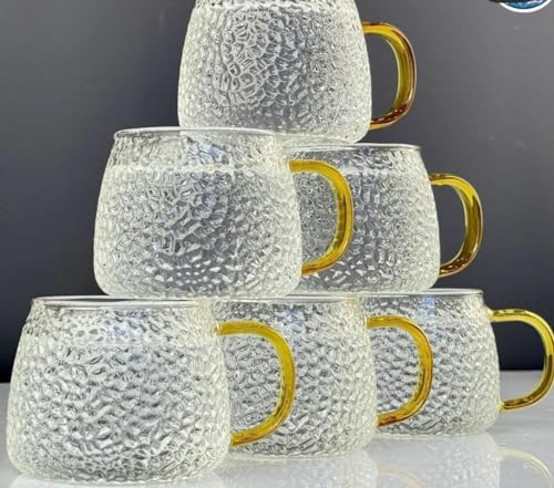 Spaceshoop - Clear Borosilicate Glass Coffee Mug with Gold Handle Microwave Safe for Milk Chocolate, Drinks, Mocha, Cappuccino, Tea, Water (2 Pack) - Premium Design and Performance for Unique Usage Experience
