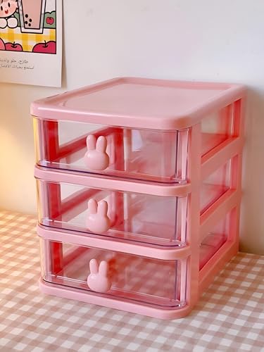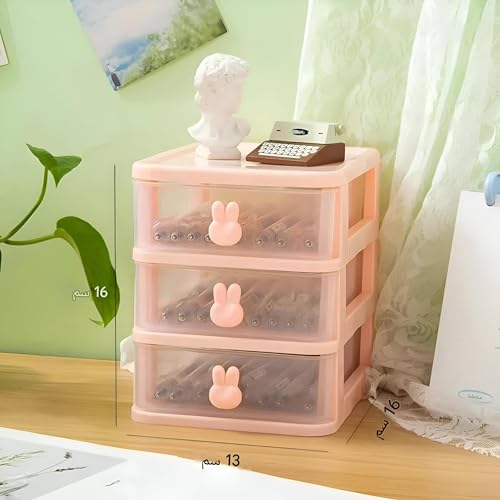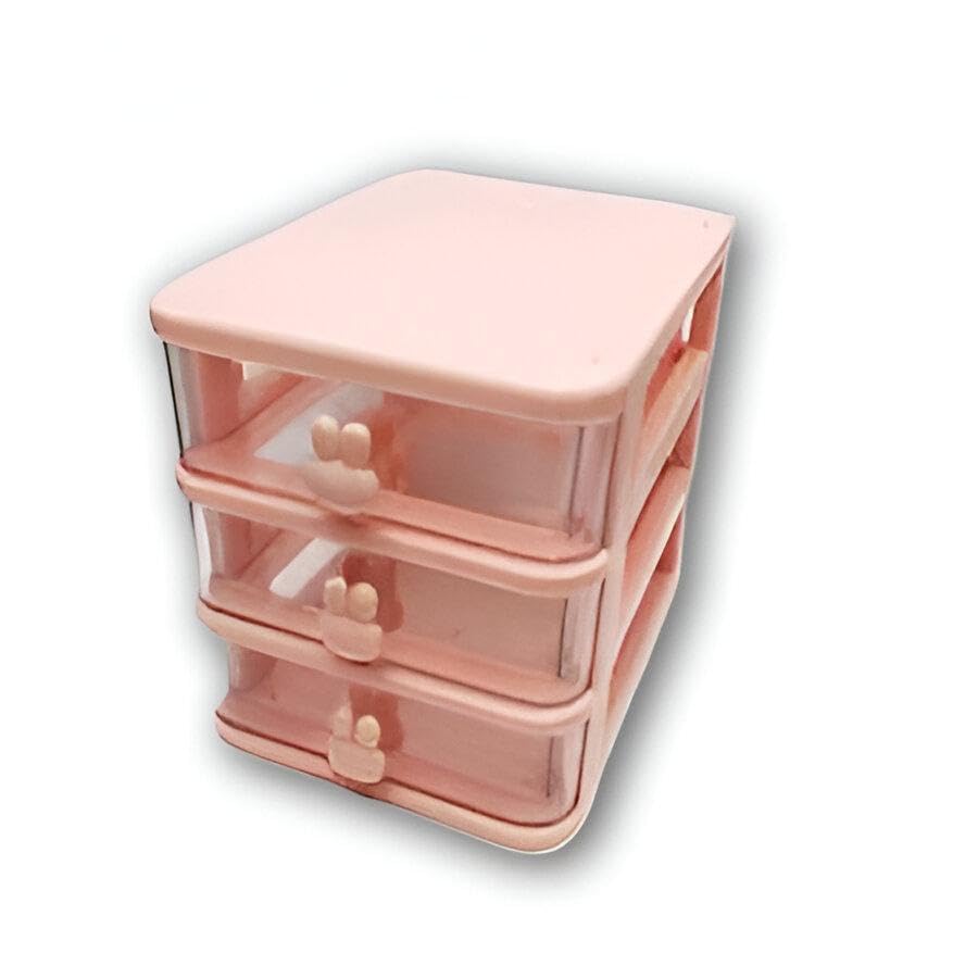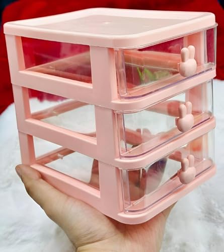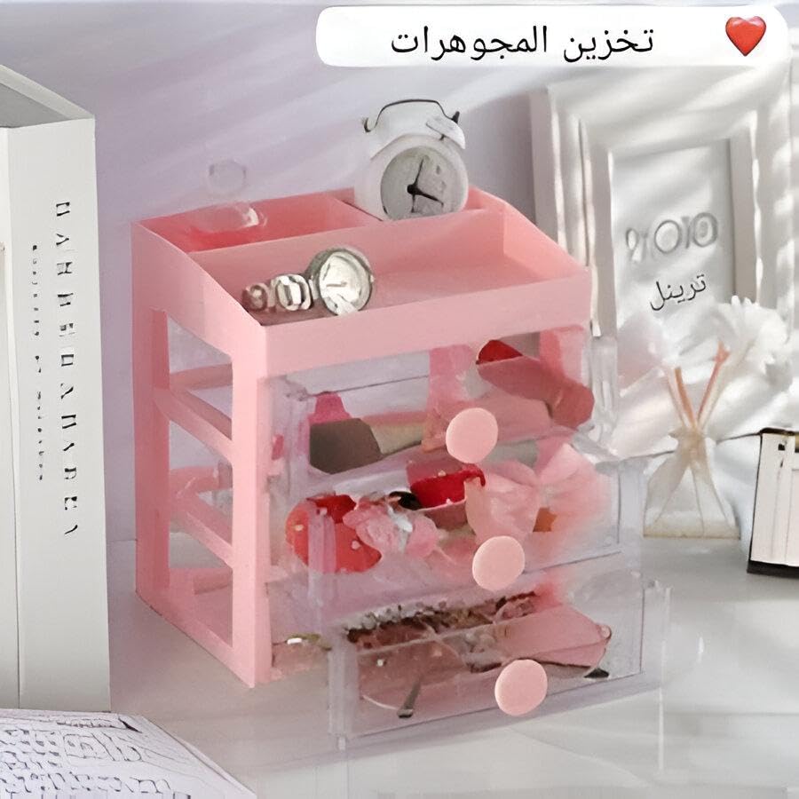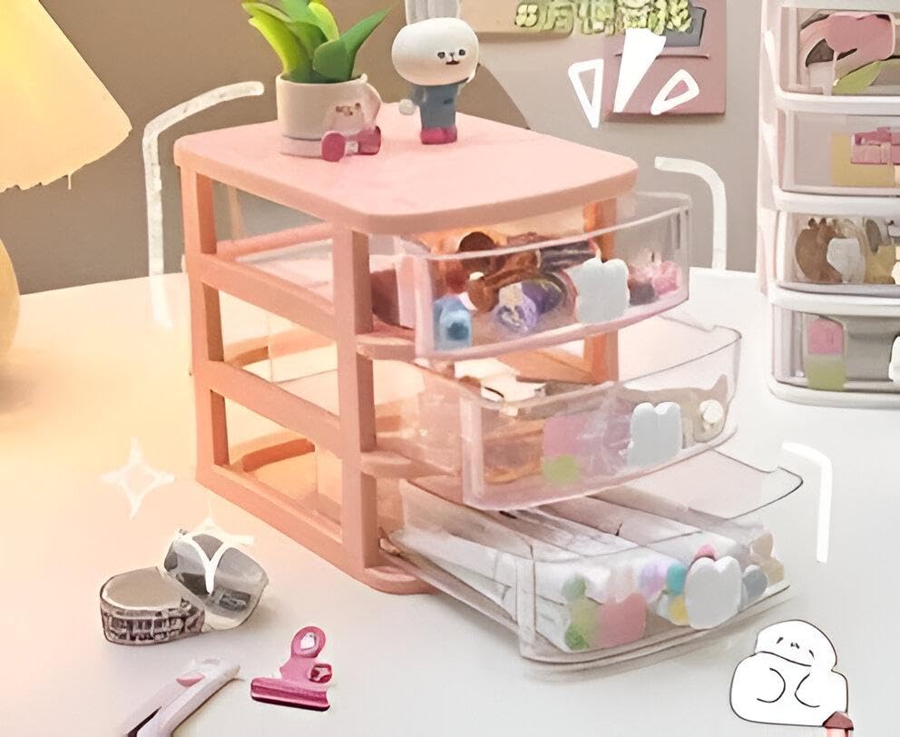 Generic - علبة شفافة - علبة تخزين شفافة بثلاثة أدراج صغيرة، منظم سطح المكتب قابل للتكديس للمكياج والمجوهرات والمستلزمات المكتبية والعناصر الحرفية للمساحات الصغيرة، لون وردي
